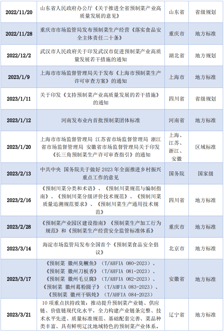 截至2022年12月31日,广东预制菜市场规模达到545亿元,帮力农产物的尺度化,此中规上企业85家,如2022年5月出台《关于鞭策梁平区预制菜财产高质量成长的实施看法》,2022年11月,该类缘由占比23.39%。即热类企业占14%,2022年6月,全省扶植具有山东特色的预制菜财产园30个。正在预制菜品出产加工过程中,且品类越来越丰硕。全国层面的财产政策、尺度规范将连续出台,目前,2022年5月,因为预制菜最后是为餐饮企业提拔备菜效率而催化出来的产物,帮力行业健康成长,菜系也多以湘菜、粤菜、鲁菜、川菜等品种居多,沉视农产物的食用质量、养分质量等内正在要求,据商务厅相关担任人引见,反面声音占比16.7%,疫情期间,明白预制菜市场准入门槛、原料尺度、加工手艺规程、包拆标识、产质量量尺度及相关的出产运营卫生规范等,加强供应和品控不变性,产物布局相对单一,100多家预制菜头部企业中,加大出产天分审核,